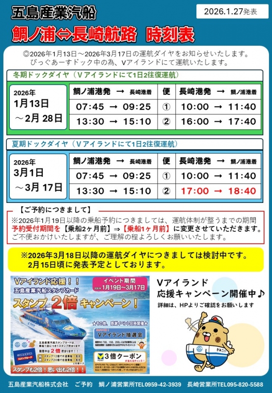 Vアイランド応援!!五島産業汽船スタンプカード★スタンプ2倍キャンペーン★