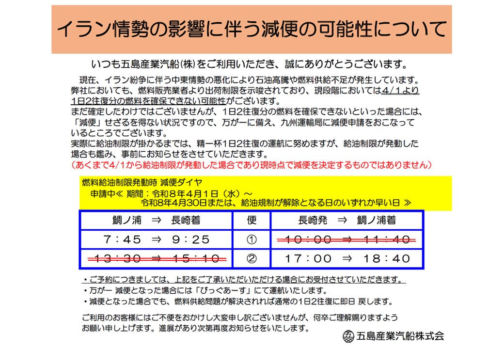 イラン情勢の影響に伴う減便の可能性について